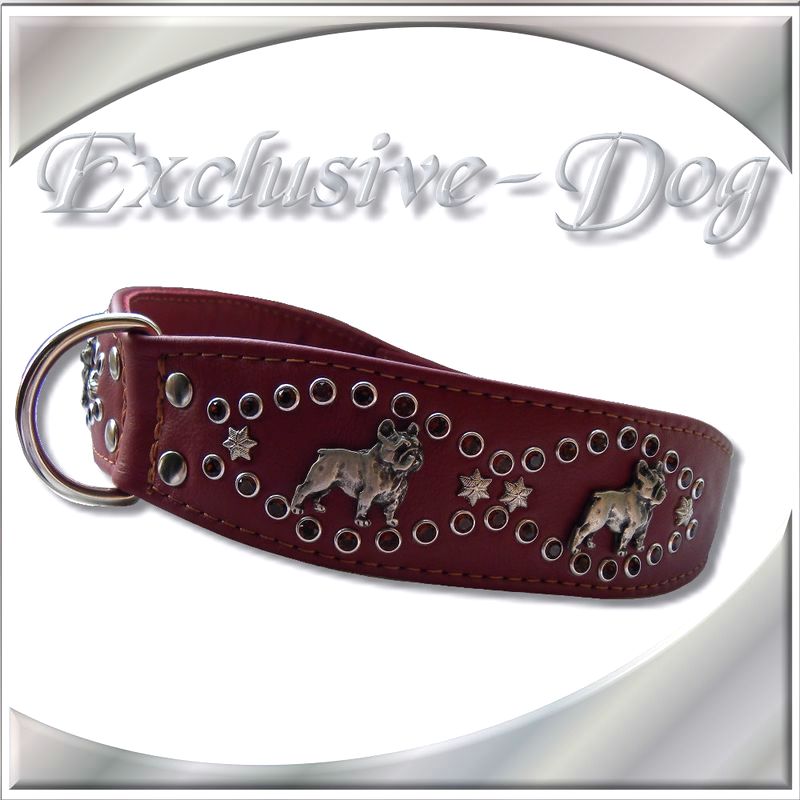 Lederhalsband Französische Bulldogge mit SWAROVSKI ELEMENTS Strasshalsband French Bully