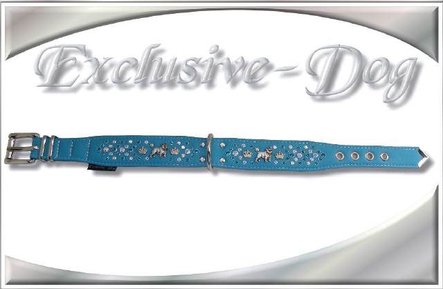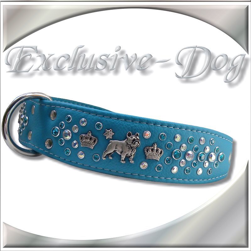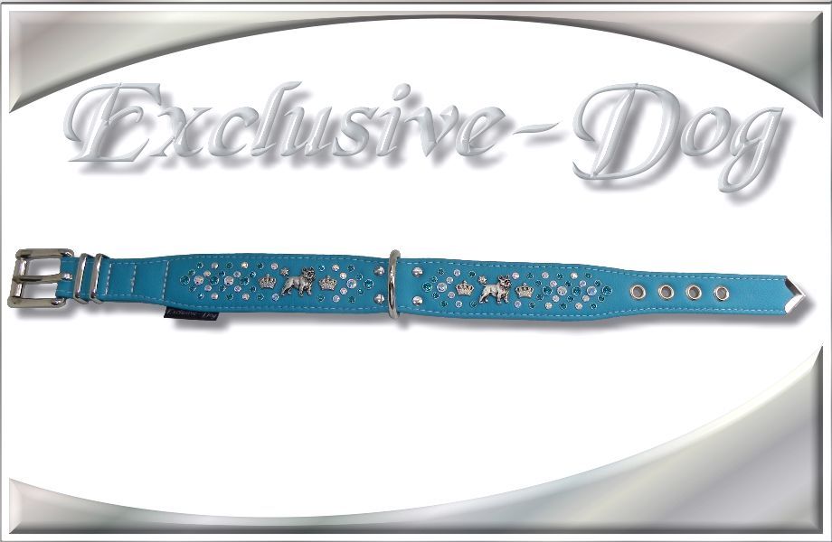 Türkis Lederhalsbänder Französische Bulldogge Strasshalsbänder mit SWAROVSKI ELEMENTS Hundehalsbänder