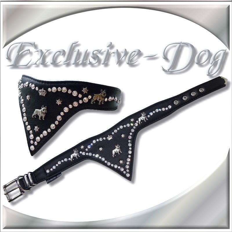 Französische Bulldogge Hundehalsband Lederhalsband mit SWAROVSKI ELEMENTS Strasshalsband Hundehalsband mit Tuch-dreieckstuch