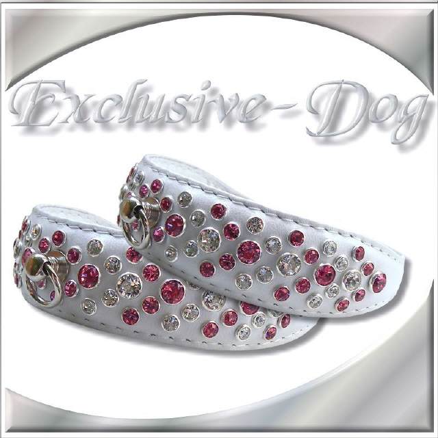 Strasshalsbänder bling bling rosa Strass Lederhalsband UNIKAT mit SWAROVSKI ELEMENTS für z.b. Chihuahua Prager Rattler XS Hunde " Strasshalsband LOOM "