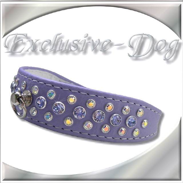 XS Schmuckhalsband Strasshalsband mit SWAROVSKI ELEMENTS blau-Lederhalsband für Chihuahua-Prager Rattler kleine Hunde " Strasshalsband SOFT "
