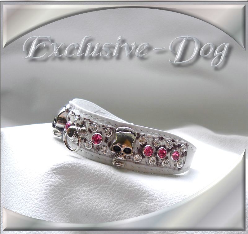 Dieses Rockabilly Strasshalsband wurde aus weißen Rossnappa Leder