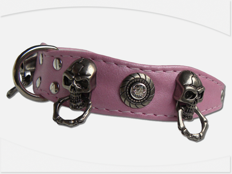 Rosa Pinkes Lederhalsband XS Hundehalsband Skull