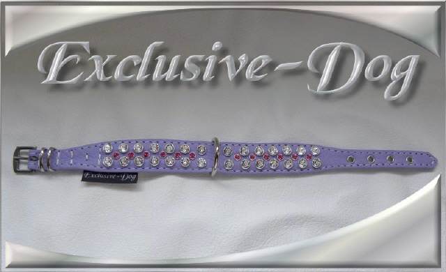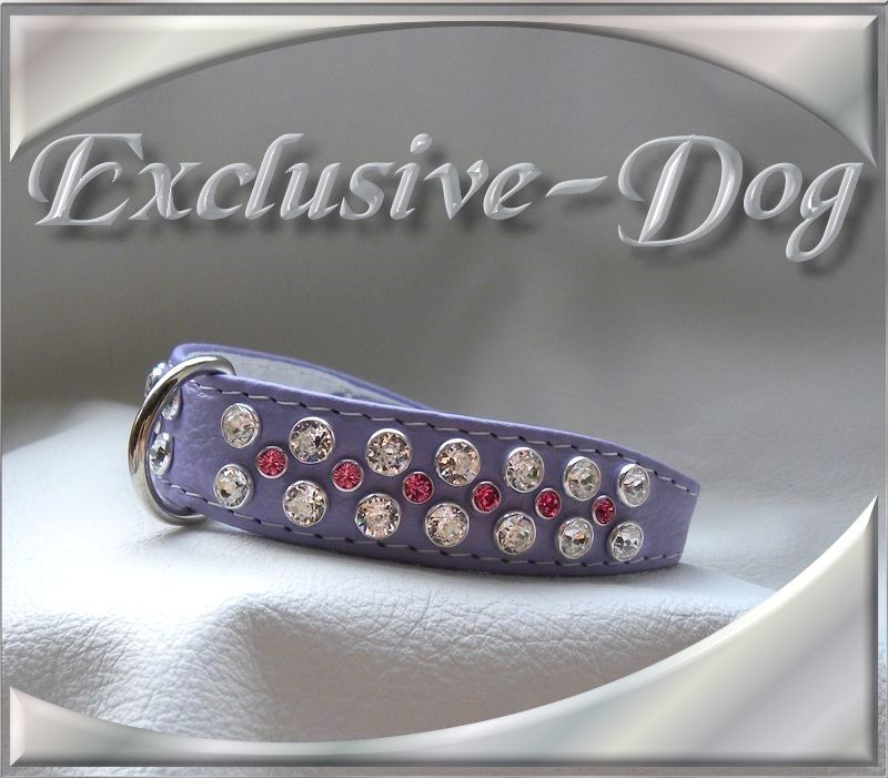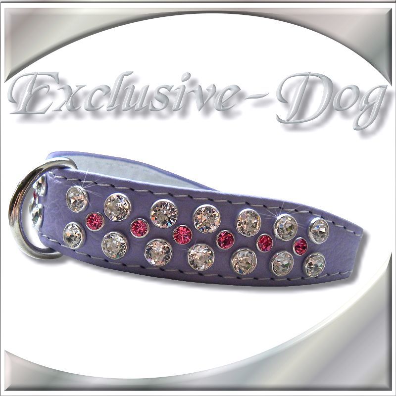 Lila Strass Halsband mit rosa/crystal SWAROVSKI ELEMENTS XS Lederhalsband für z.b. Chihuahua-Prager Rattler-Yorkshire-Terrier