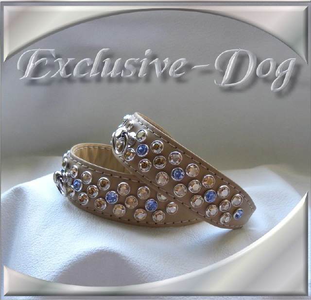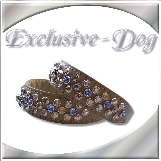 Diese XS Strasshalsbänder wurden aus beige Ross- Nappaleder hergestellt,
