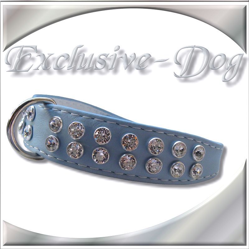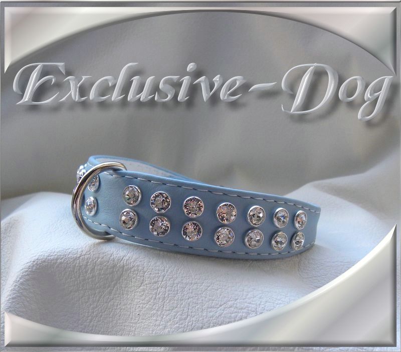 XS blaues Strass Halsband Lederhalsband mit SWAROVSKI ELEMENTS für z.b. Chihuahua Prager Rattler kleine Hunde