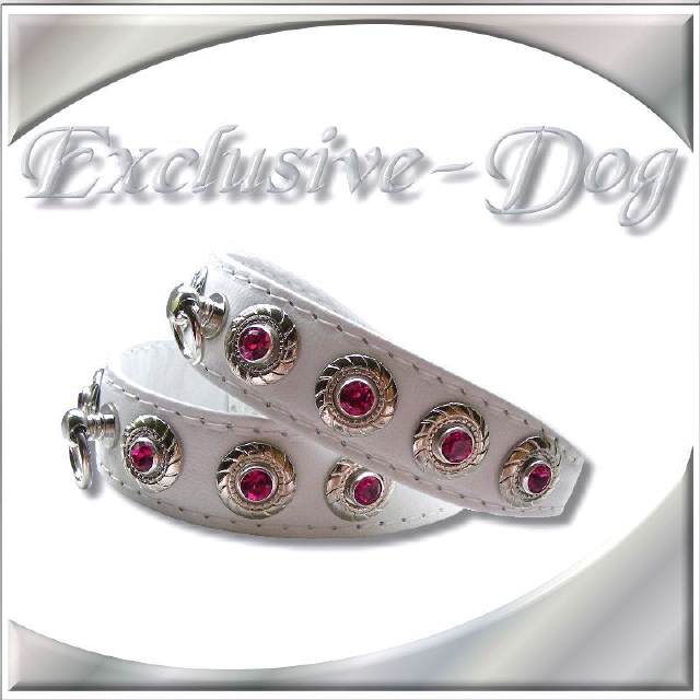 Diese kleinen Strass-Halsbänder wurden aus weißen Ross-Nappaleder