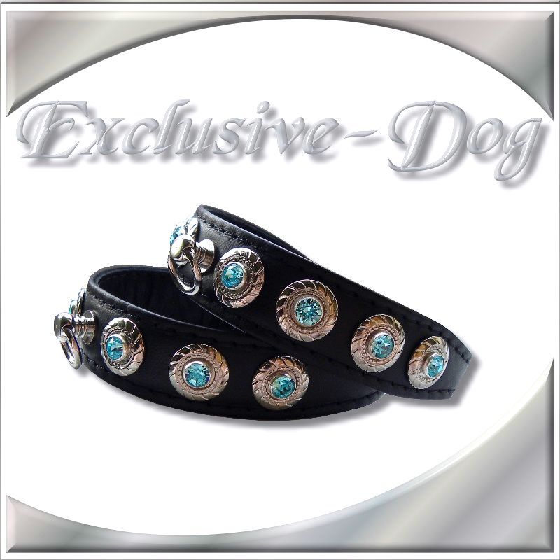 Diese XS Strasshalsbänder wurden aus schwarzen Ross-Nappaleder