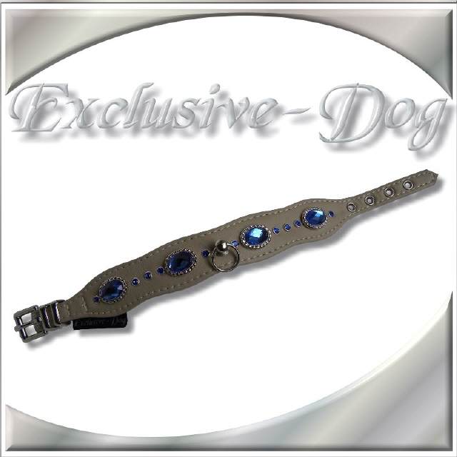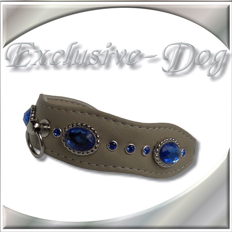 XS Strasshalsband Hundehalsband m.blauen Strass