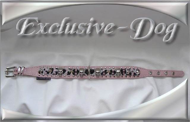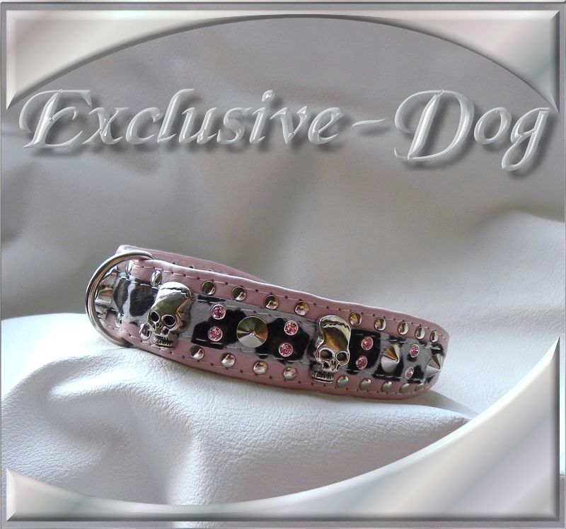 Mops Strass Lederhalsband Skull Animal Print mit SWAROVSKI ELEMENTS Totenkopf Hundehalsband rosa