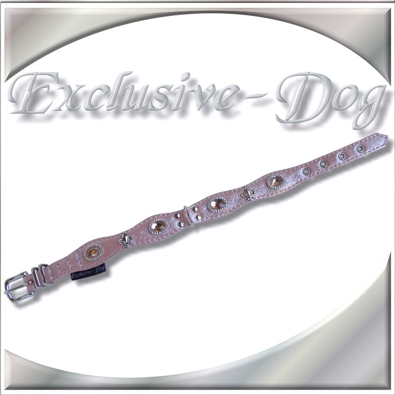 Rosa-Apricot Hundehalsband Lederhalsband Strass