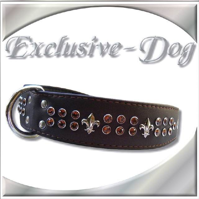 Luxus Hundehalsband Lederhalsband mit SWAROVSKI ELEMENTS -Strass - Leder - Lilie - Krone-Unikat-Hamburg " Lederhalsband DIRECT "