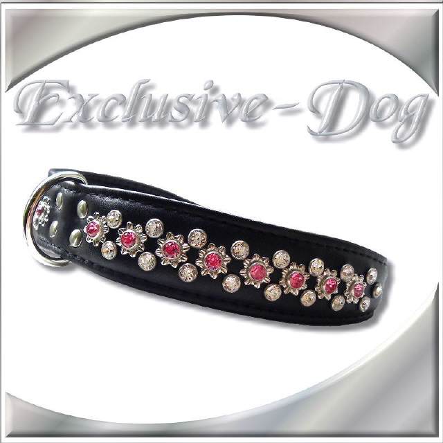 Rosa LUXUS EDEL Strass Lederhalsband Strasshalsband mit SWAROVSKI ELEMENTS Hondenhalsband-Dog Collar-Rhinestone Necklace Halsband " Comity "