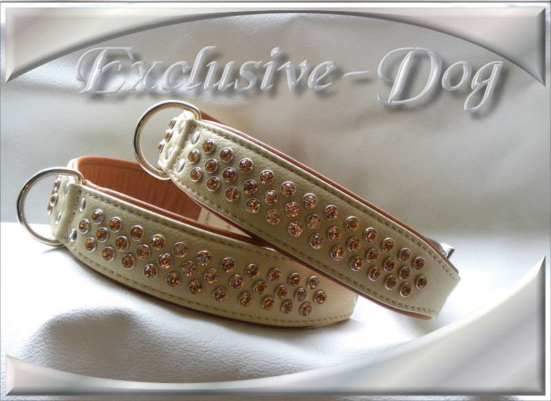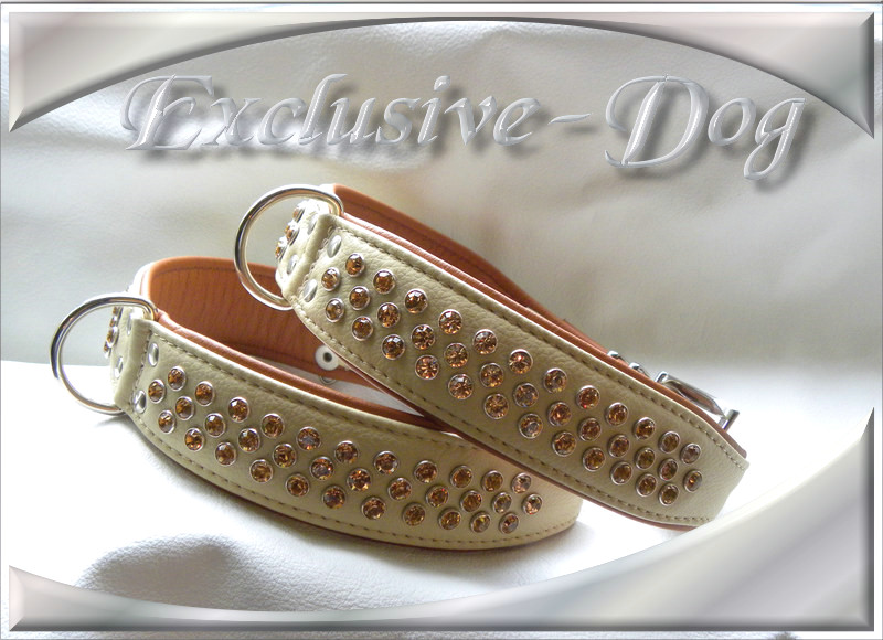 Dieses Strasshalsband, wurde aus beigem Nappaleder hergestellt,