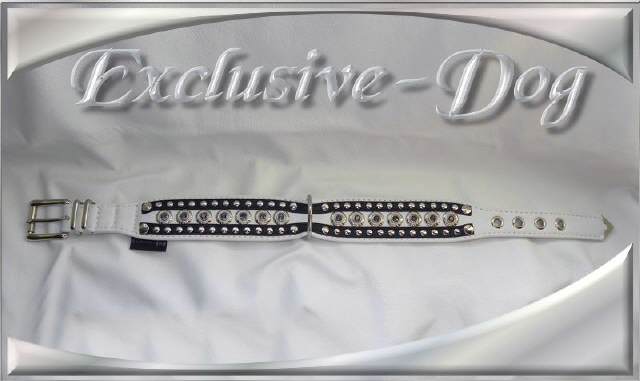 Schwarz-Weiß Lederhalsband Strass Nieten Halsband
