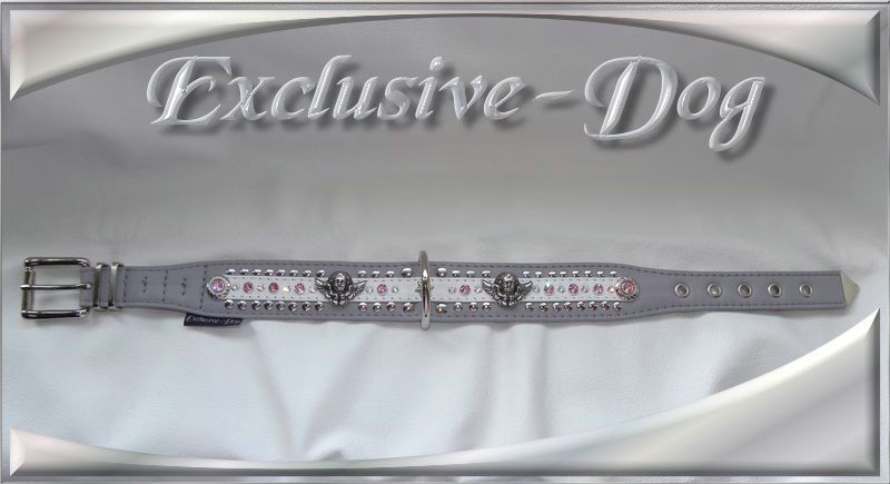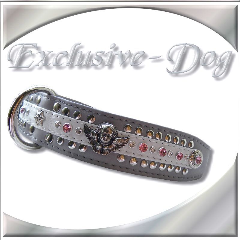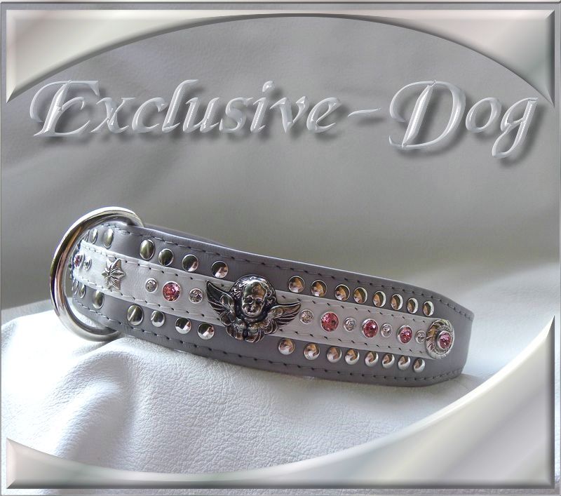 Dieses Strass Leder Hundehalsband wurde aus grauen-weßen Ross - Nappaleder
