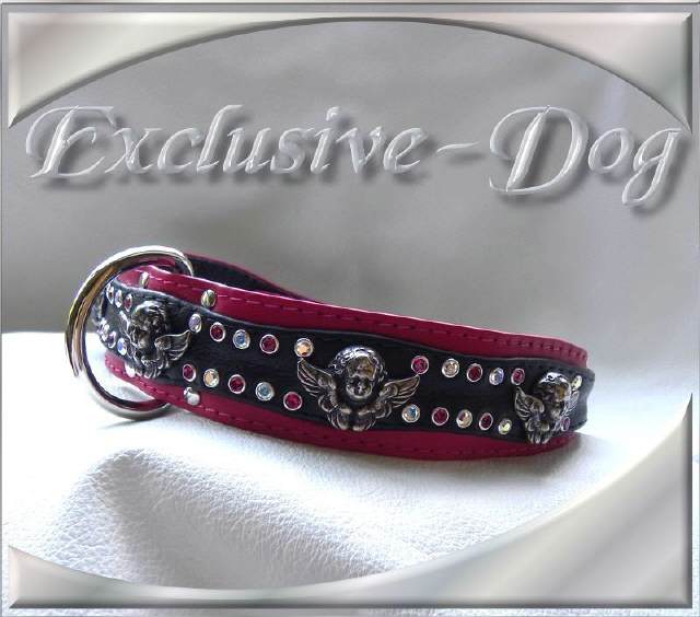 PINK Magenta Hundehalsband ENGEL Strass Leder