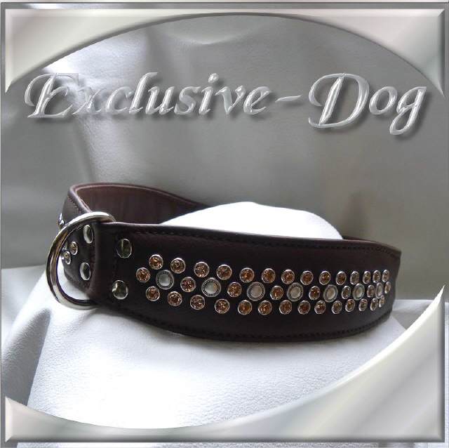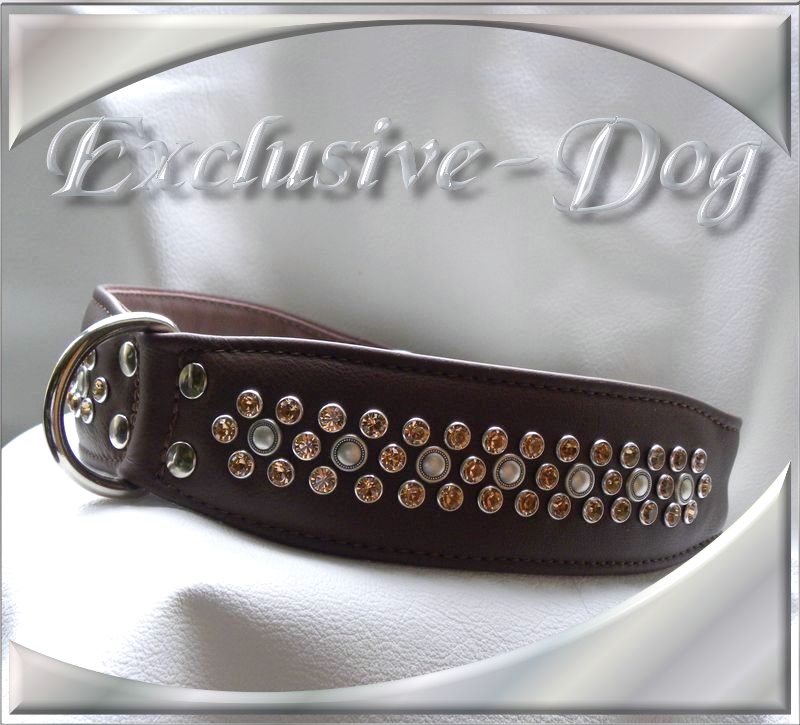 Hundehalsband Leder Strass xxl mit SWAROVSKI ELEMENTS Halsbänder für z.b. Dogge-Mastiff-Bulldogge Halsband" Portly "