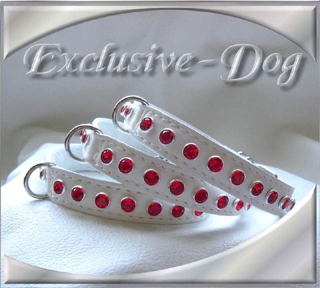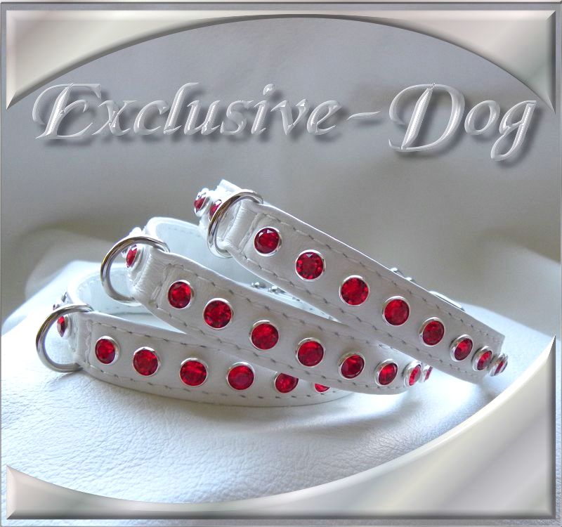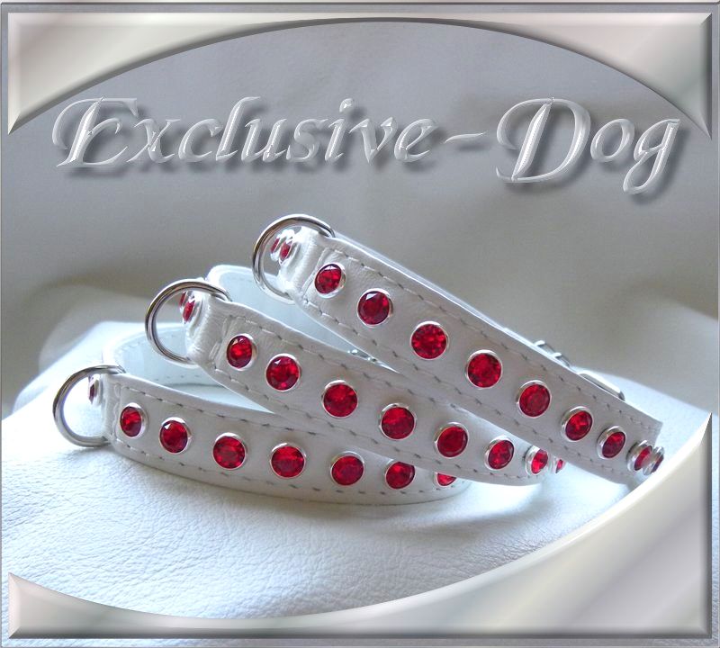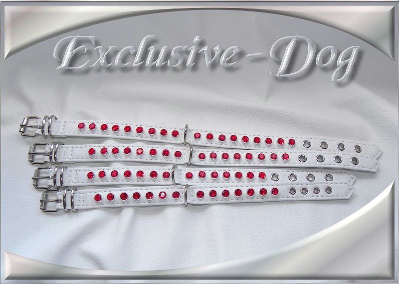 Diese mini Strass-Leder Halsbänder wurden aus sehr weichen weißen Rossnappaleder hergestellt,