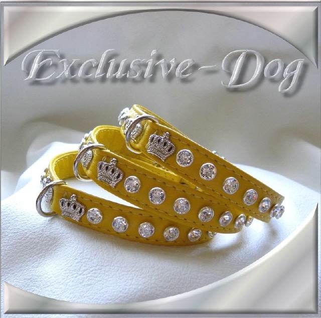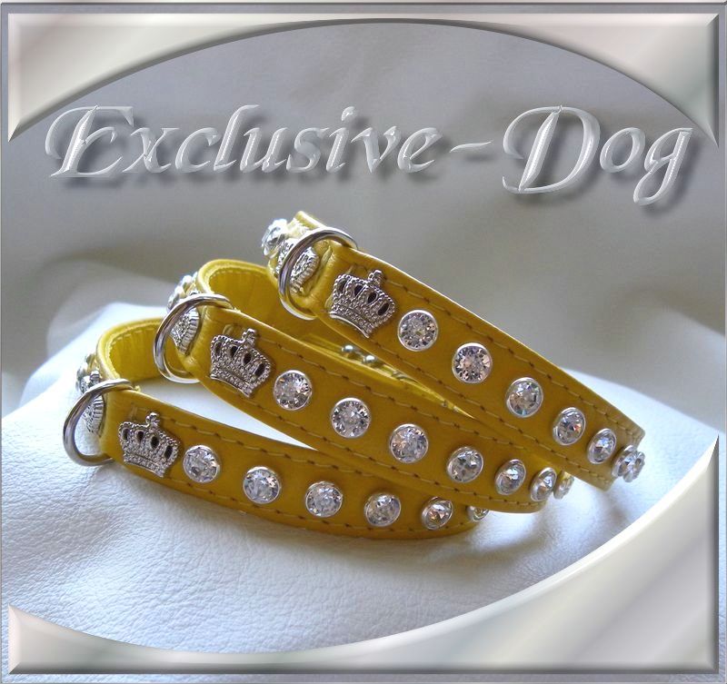 gelbe Strasshalsbänder Lederhalsband mini mit SWAROVSKI ELEMENTS Chihuahua Prager Rattler Halsband