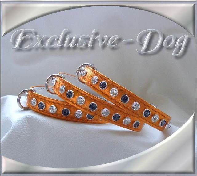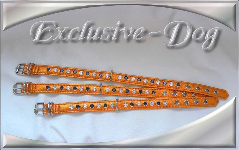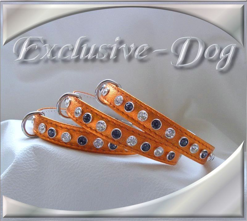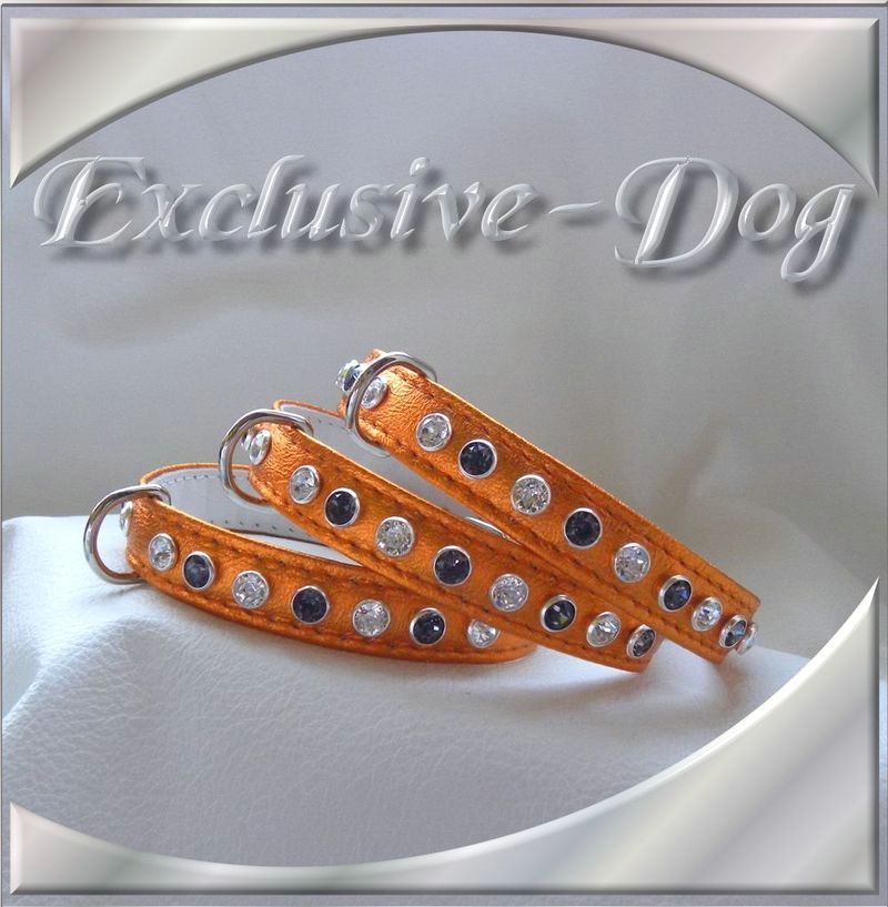Diese XS Strasshalsbänder wurden aus orange farbenen weichen Nappaleder hergestellt,