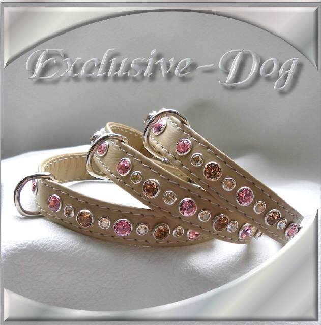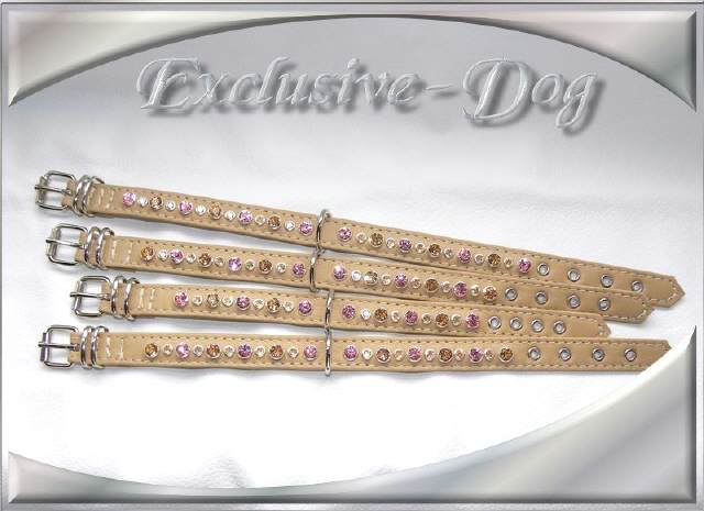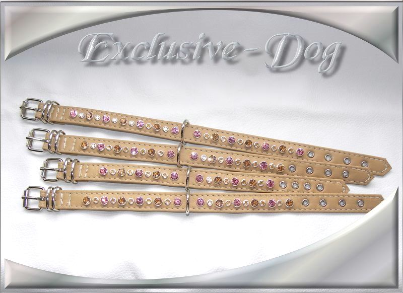Diese kleinen Strass Leder Halsbänder wurden aus hell -beigen Rossnappaleder hergestellt,
