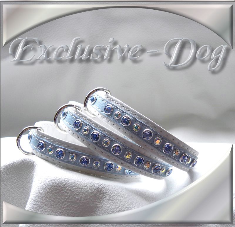 Diese Leder-Strass Halsbänder wurden aus hell-blauen Nappaleder hergestellt,