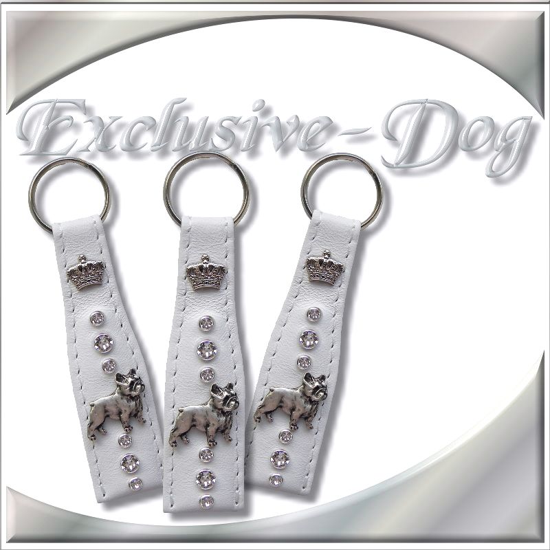 Französische Bulldogge Schlüsselanhänger mit SWAROVSKI ELEMENTS Leder Strass Bully Krone