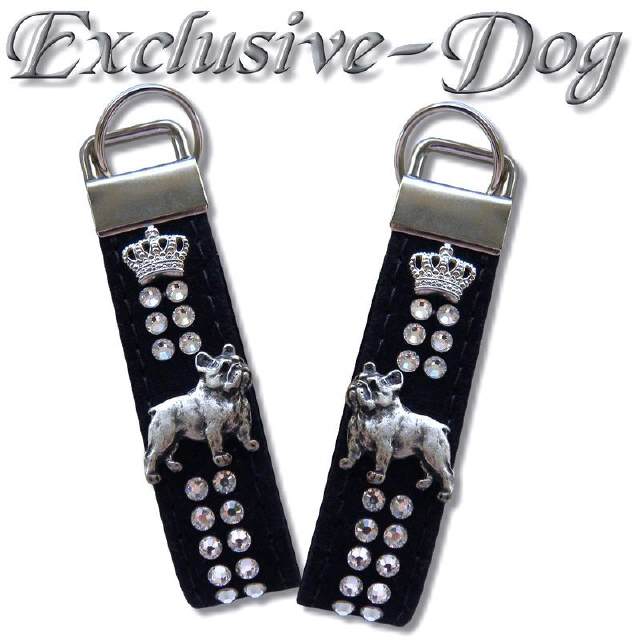 Französische Bulldogge Schlüsselanhänger / Strass / Leder mit SWAROVSKI ELEMENTS schwarz " H. French Bulldog "