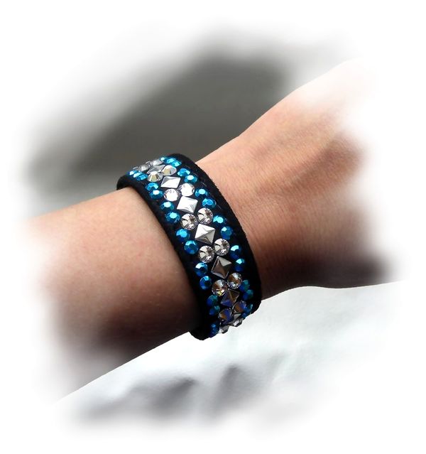 Dieses Strass Armband wurde aus schwarzen weichen Velour Leder hergestellt,