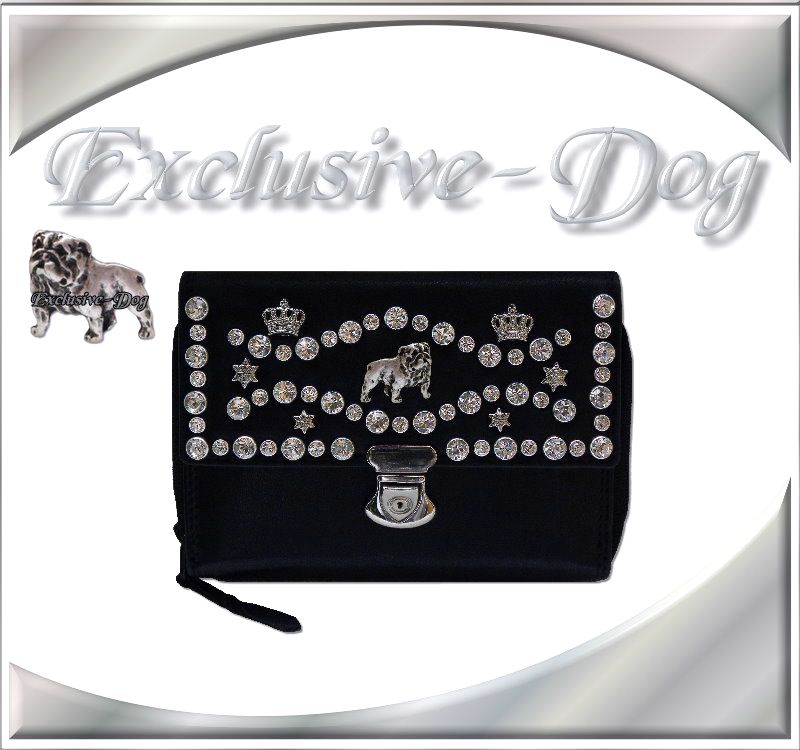 Englische Bulldogge Geldbörse mit SWAROVSKI ELEMENTS Leder Strass Luxus Portemonnaie
