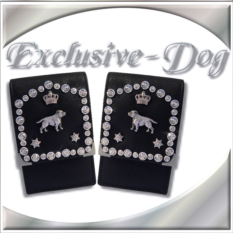 Staffordshire Bullterrier Luxus Leder Zigarettenetui Zigarettenbox mit SWAROVSKI ELEMENTS