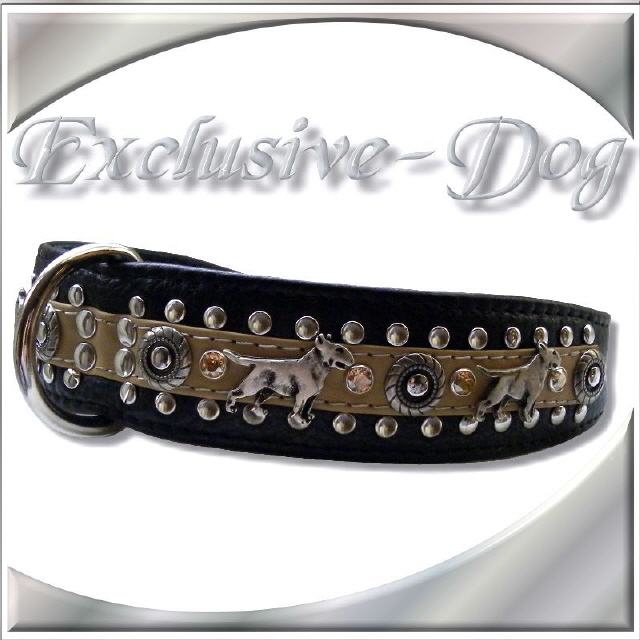 Bullterrier Halsbänder aus Leder mit SWAROVSKI ELEMENTS und / oder Nieten finden Sie hier.