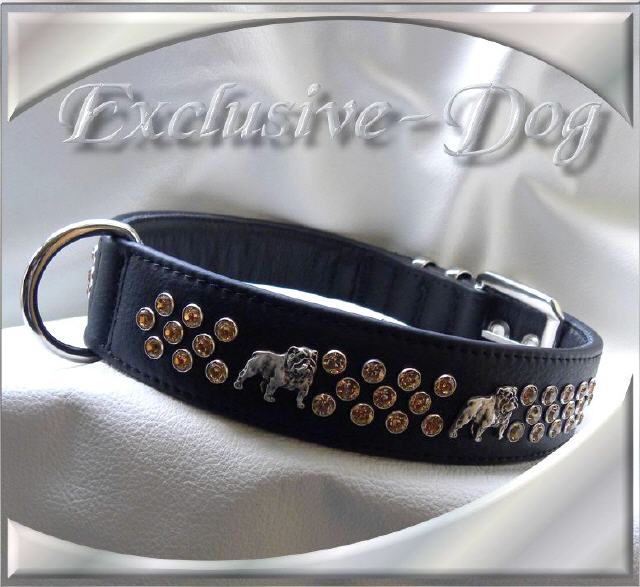 Englische Bulldogge Lederhalsband Hunde Luxus Strass Halsband für English Bulldog " Strong " by Exclusive-Dog