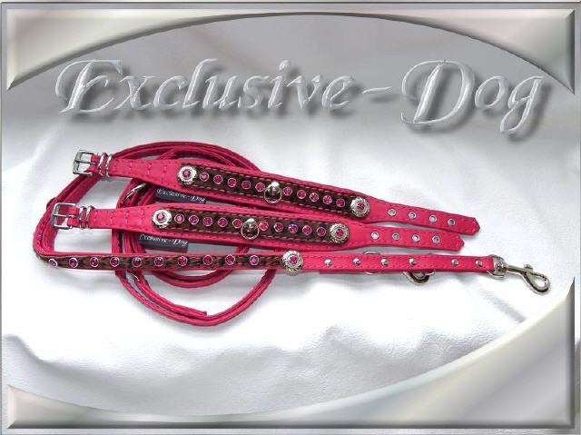 XS pink Strass Lederleine lang Leder Fell mit SWAROVSKI ELEMENTS Prager Rattler-Chihuahua