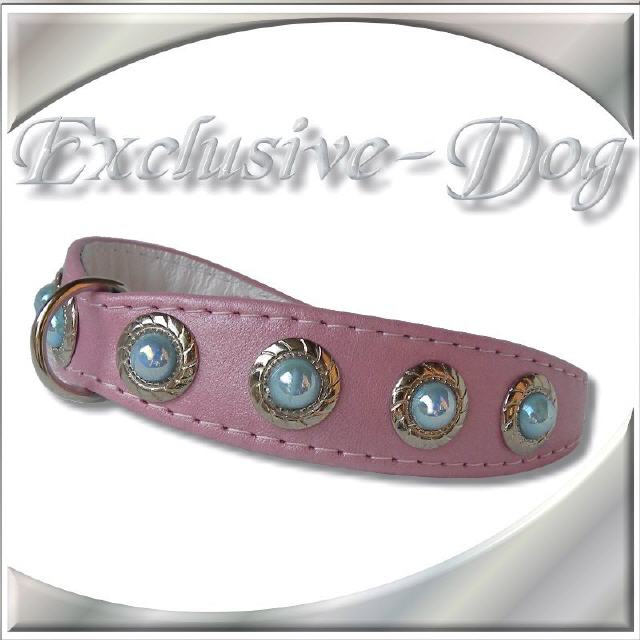 Rosa Hundehalsband Lederhalsband EXCLUSIVE-DOG