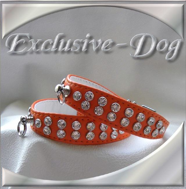 Diese Strasshalsbänder wurden aus orange farbenen weichen Nappaleder hergestellt,