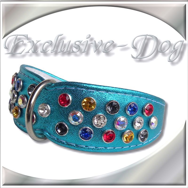 Dieses XS Strasshalsband wurden aus metallic blau farbenen Nappaleder hergestellt,