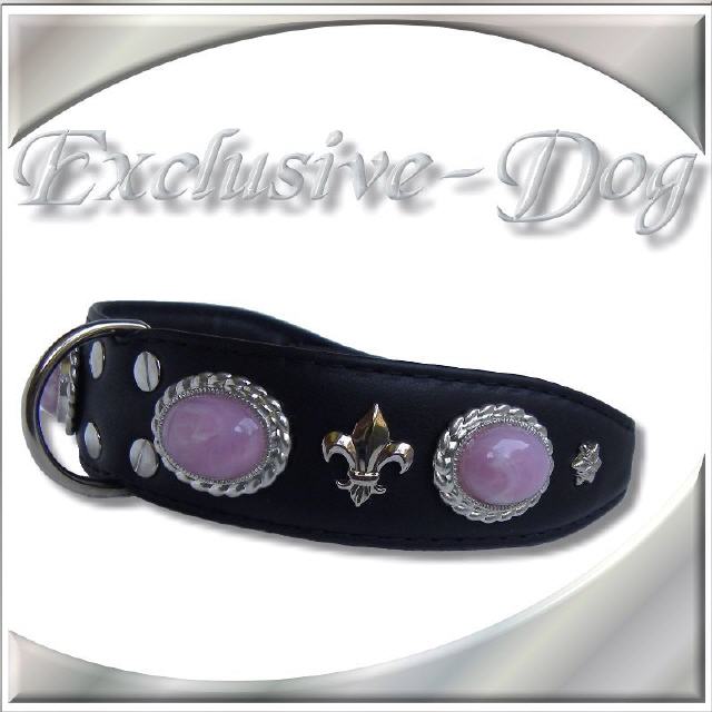 Hundehalsband Lederhalsband, rosa Steine mamoriert