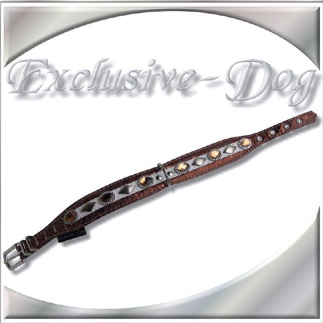 Luxus Mops-Cocker Spaniel Hundehalsband Lederhalsband-braun Reptil Design.