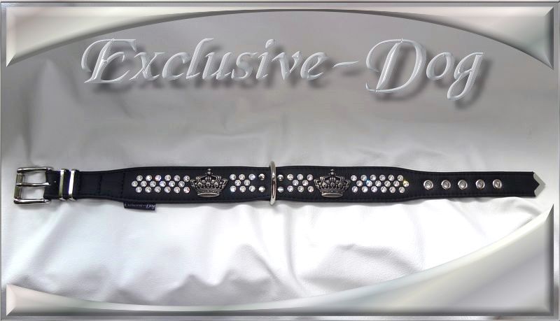 Hunde Lederhalsbänder Strasshalsbänder mit SWAROVSKI ELEMENTS Luxus-Leder-Strass-Hund Halsband " Kinglike "