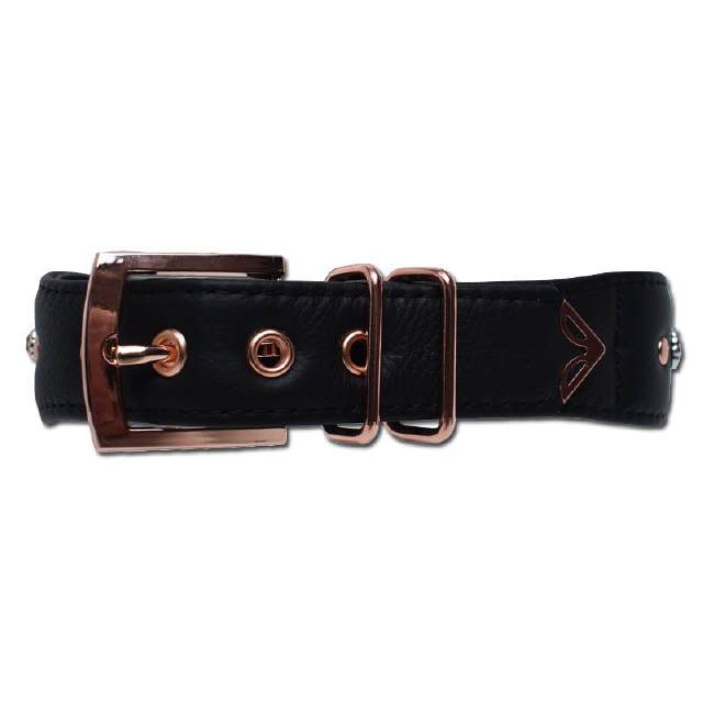 Lederhalsband mit Roségold-Details-Luxus Hundehalsband aus Leder, schwarz Exklusive Design