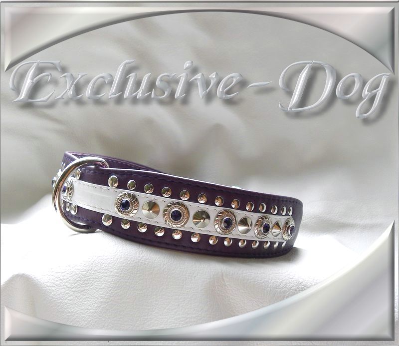 Hundehalsband Lederhalsband Strass Nieten mit SWAROVSKI ELEMENTS Halsband lila Dog Collar