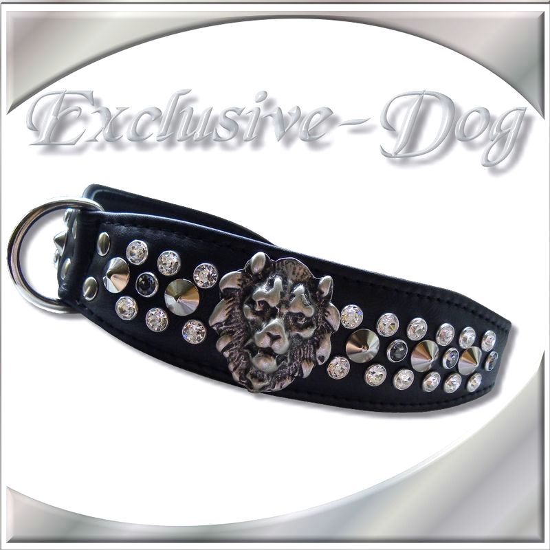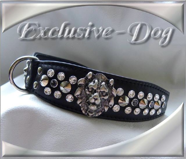 Lederhalsbänder Strasshalsbänder Leder Strass Nieten Löwenkopf Hundehalsband mit SWAROVSKI ELEMENTS ( Französische Bulldogge )