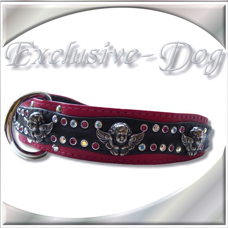 PINK Lederhalsband Strasshalsband mit SWAROVSKI ELEMENTS Leder Strass Engel z.b. Französische Bulldogge