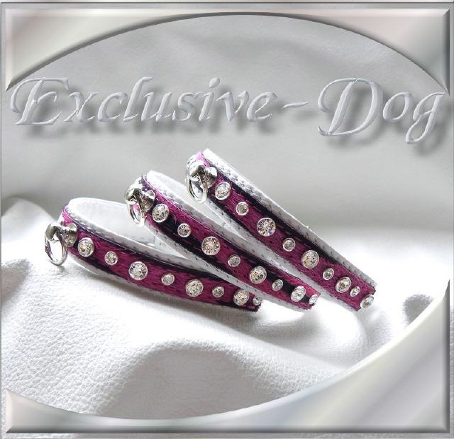Pink - Rosa Fell Strass Leder Hundehalsband mit SWAROVSKI ELEMENTS Chihuahua Prager Rattler XS Lederhalsband