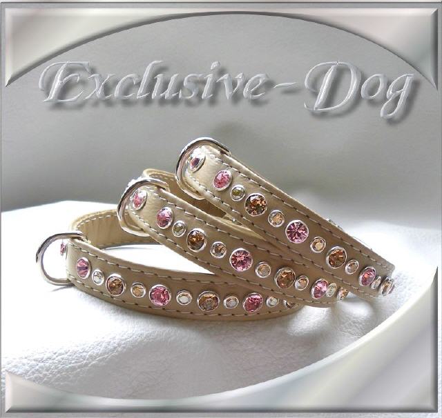 Diese kleinen Strass Leder Halsbänder wurden aus hell -beigen Rossnappaleder hergestellt,