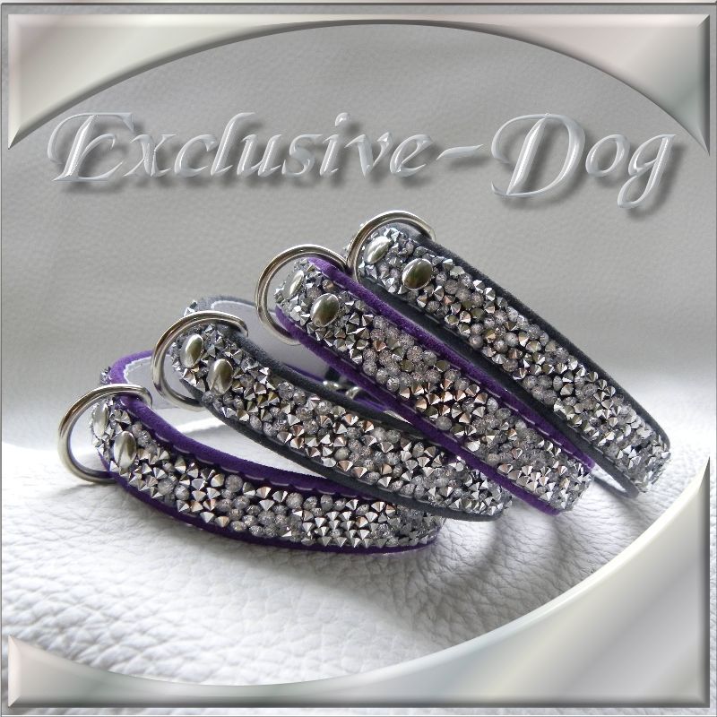 XS-S Strasshalsband lila sowie grau, mini Halsband für z.b. Chihuahua, Malteser, Yorkshire Terrier