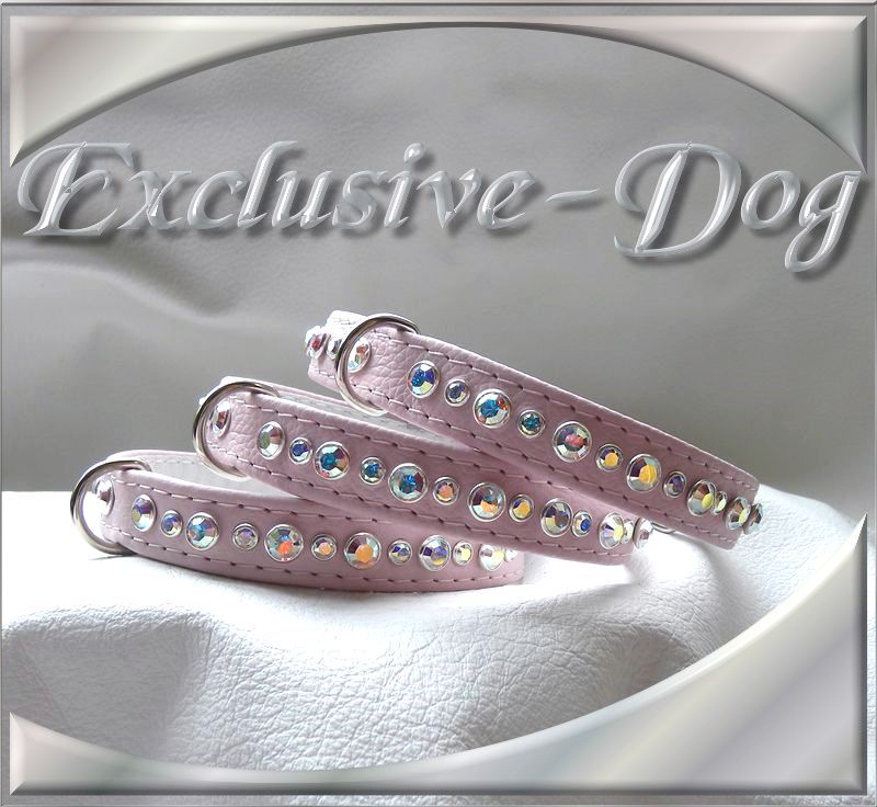 Diese XS Strass-Halsbänder wurden aus rosa Nappaleder hergestellt,