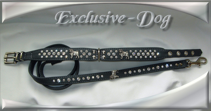 Mops Halsband / Leinen Set " Clear " Klassisch, edel & schick